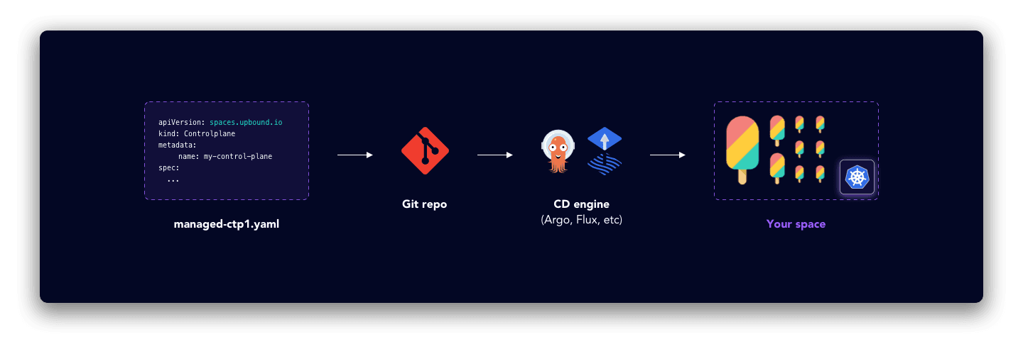 Git integration out of the box: Drive the configuration of your control planes from Git without needing to set up additional tools.