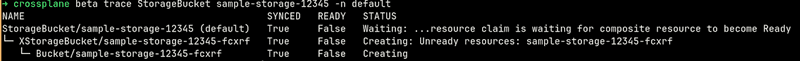Using the new Crossplane beta trace command is helpful in checking the latest events on the composed resources from the Claim/XR: