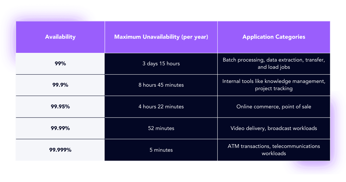 Per Amazon’s AWS Reliability Pillar, the company sees the following availability targets for various types of applications.