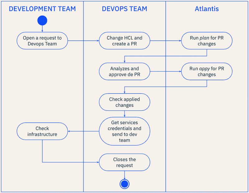 Using the Gitops concept, the source of truth was GitHub Repositories with HCL defining the infrastructure. The repository contained the infra of a specific product and was maintained mainly by the infrastructure team, making changes and creating new resources on demand, fulfilling requests opened by the development team.